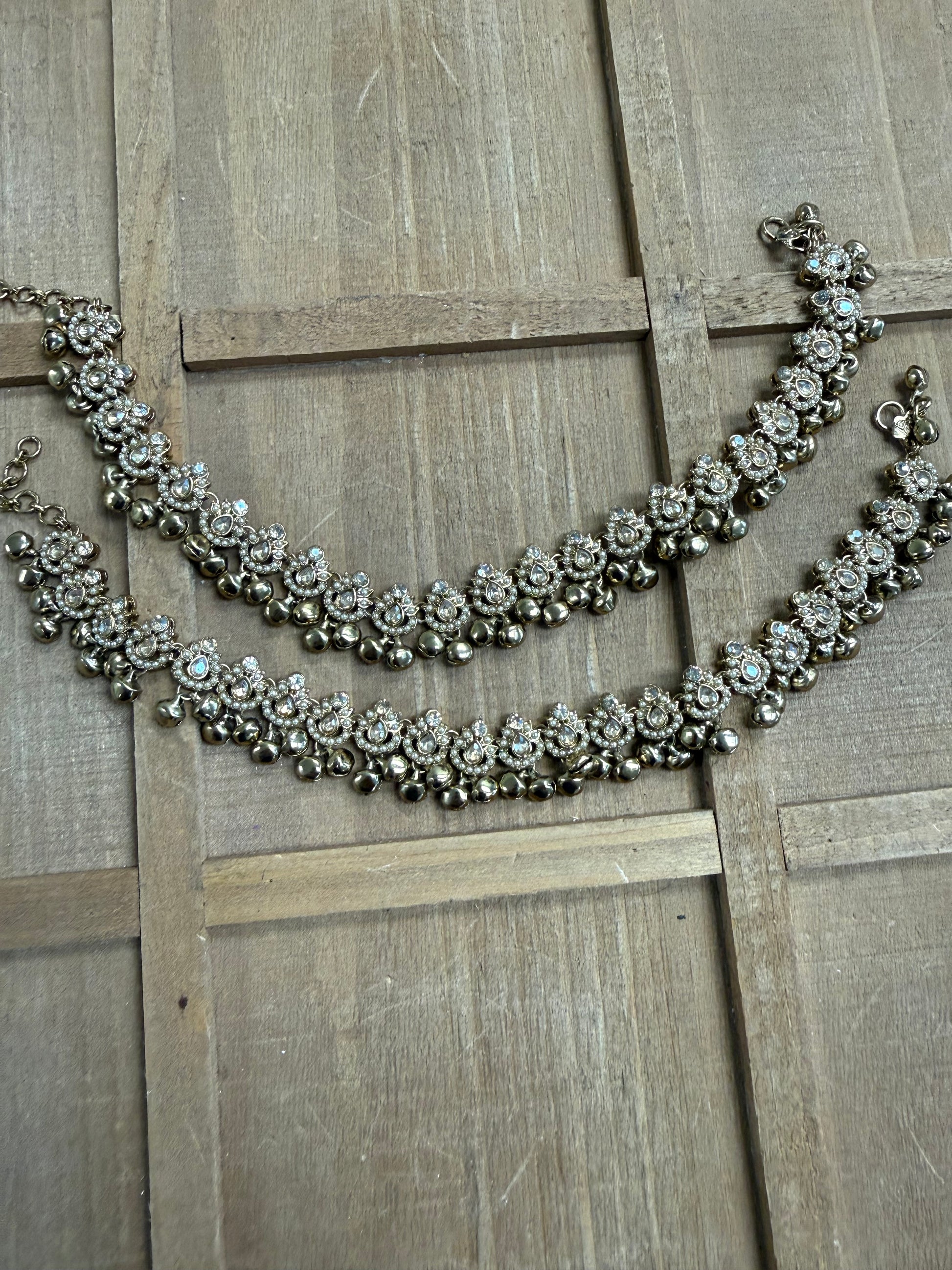 Champagne Stone Jhanjar/Payal with Pearls and Ghungroo